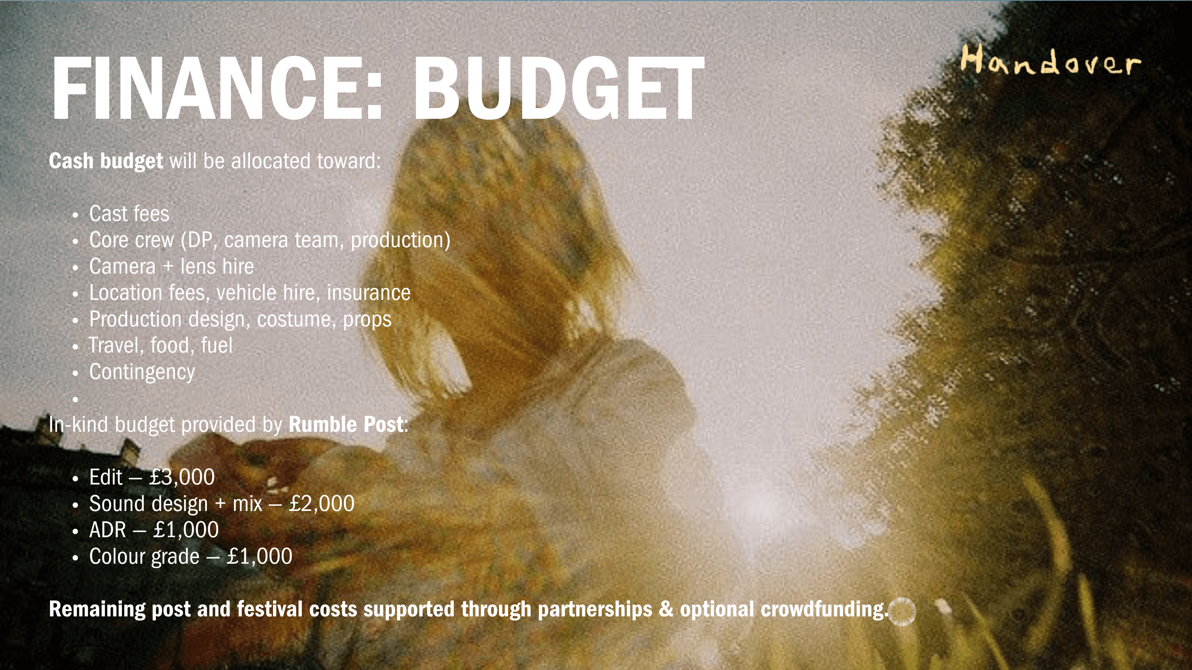 This begins a perpetual, dizzying loop of handovers. Never a break, handed from car to car like a prisoner, until her objectification becomes too much.